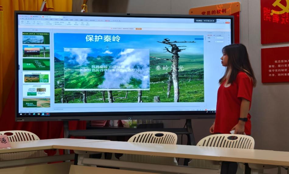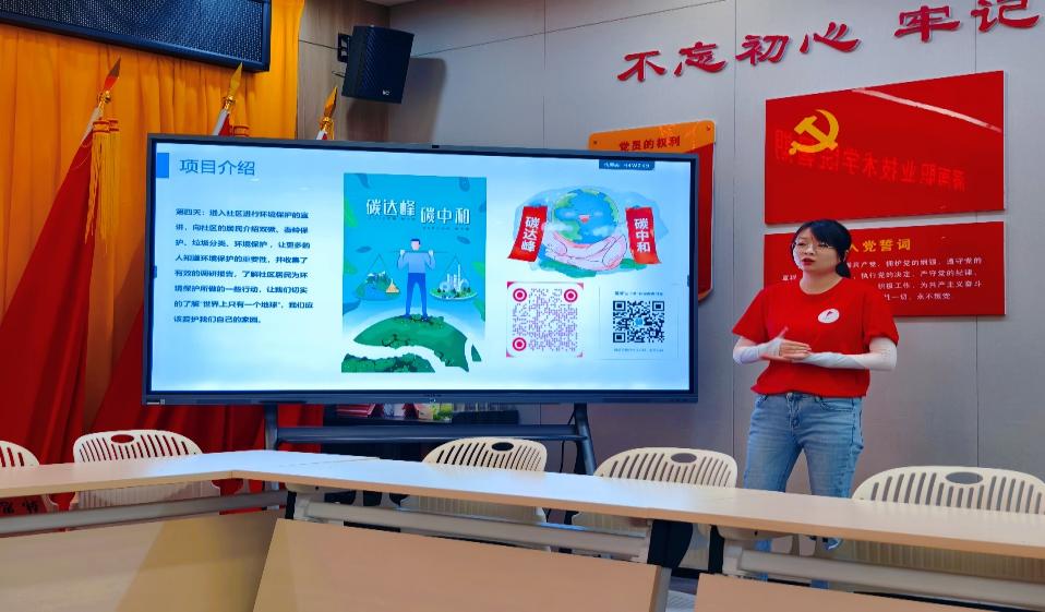 实践团成员用图片和视频向社区群众介绍了“绿水青山就是金山银山”的理念、“碳达峰”与“碳中和”、“秦岭保护”、“秦岭四宝”、垃圾分类的知识,为大家带来一场生动有趣的环保宣讲会。