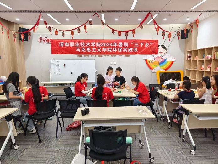 与小朋友们进行“童心同行 变废为宝”的环保手工制作活动。利用生活中的饮料瓶、包装盒、雪糕棒等制作玩具和工艺品,把环保的“种子”种在小朋友们心间。实践团成员还向居民分发设计精美的环保宣传单、张贴海报,进一步宣传环保理念。