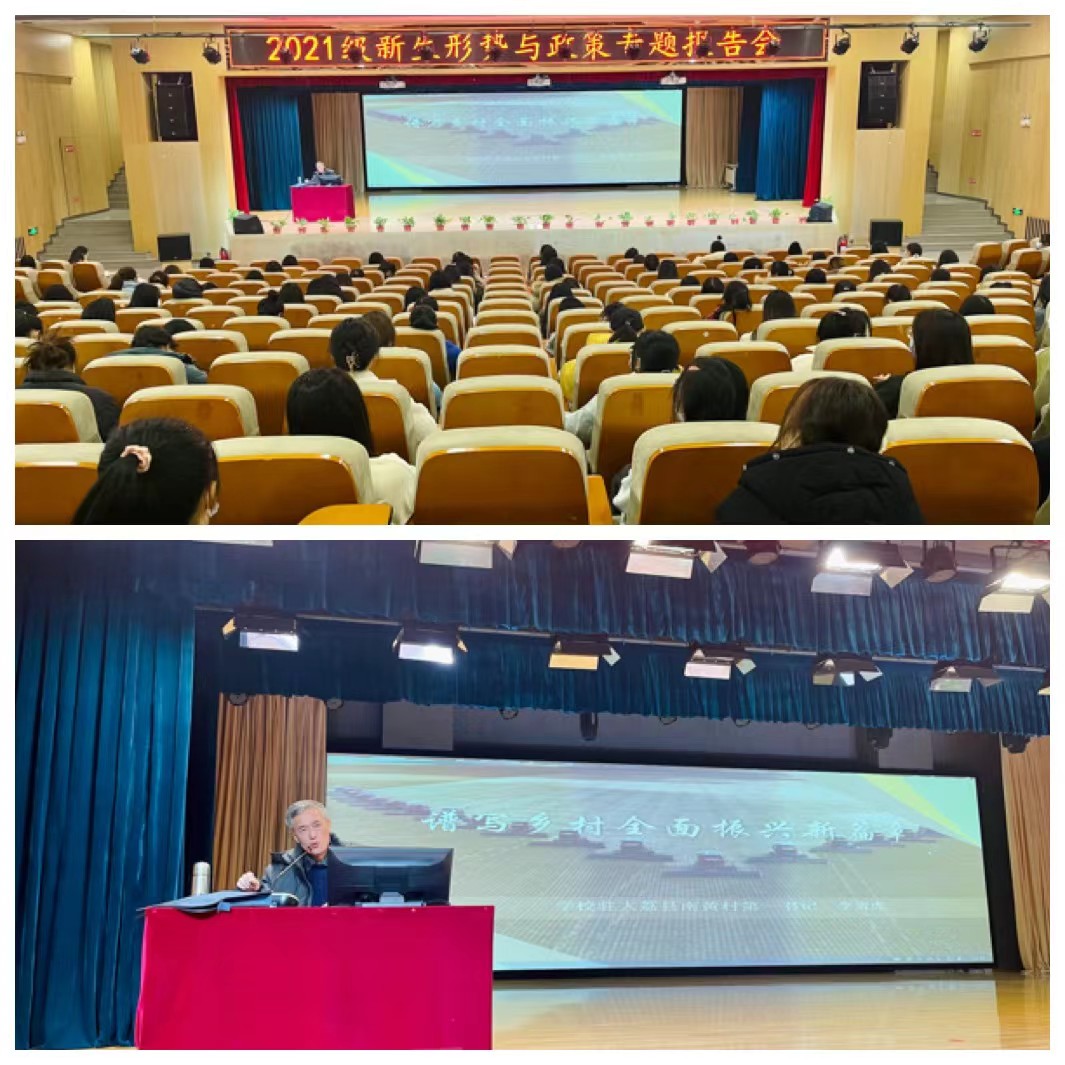 为进一步加强和改进大学生思想政治教育工作,发挥“形势与政策”课在立德树人方面的重要作用。12月2日,jdb电子游戏官方网站邀请jdb电子驻大荔县南黄村第一书记李寅虎老师,来校为师范学院部分学生以《谱写乡村全面振兴新篇章》为题上“形势与政策”课。