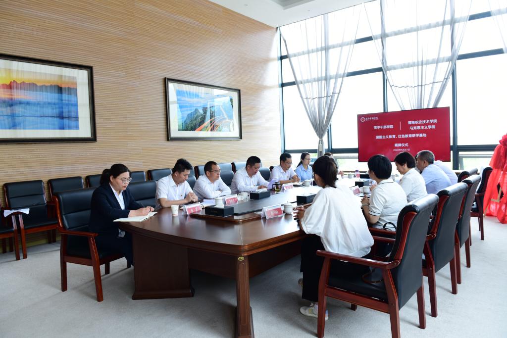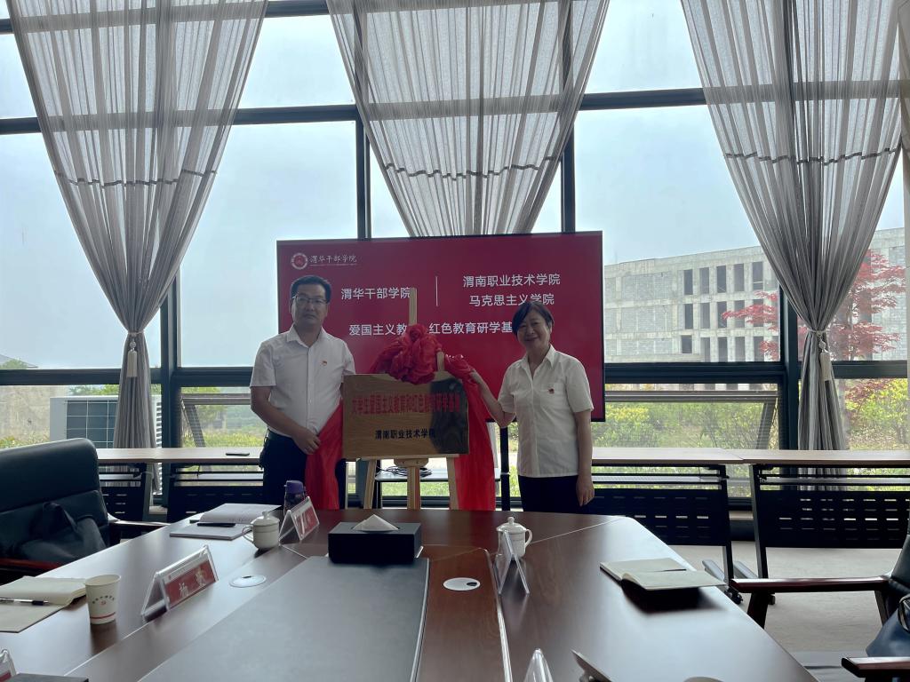 5月27日上午,jdb电子“大学生爱国主义教育和红色教育研学基地”揭牌仪式在渭华干部学院举行。渭华干部学院副院长王锋、办公室主任韩宝林以及其培训部、教研部、外联部和研究中心负责人出席。jdb电子jdb电子游戏官方网站党政负责人和综合管理服务中心、教学科研服务中心负责人以及全体思政教师参加。揭牌仪式由王锋主持。