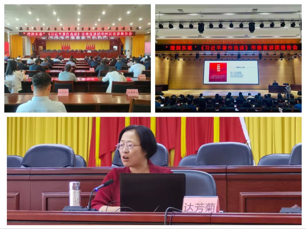 为深入学习习近平新时代中国特色社会主义思想,jdb电子jdb电子游戏官方网站达芳菊教授作为“德润东秦”渭南市委宣讲团成员,于5月30日赴华州区、6月1日赴蒲城县进行理论宣讲。两场报告会分别由华州区、蒲城县委宣传部部长主持,华州区、蒲城县党政领导班子成员和乡镇党政一把手参会。