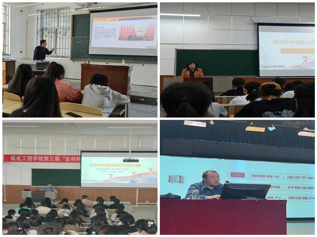 5月8日至6月7日,渭南市延安精神研究会会长雷民康、渭南市委党校副校长宋筱改、原渭南师范学院jdb电子游戏官方网站副院长马忠智、渭南延安精神研究会理论部主任王天平四位客座教授分别为4个二级学院部分班级讲授“形势与政策”课,他们分别选取了“开创高质量发展新局面”“走好中国式现代化”等专题。课后学生反映教授们的讲课别开生面,课程内容丰富、形式新颖,以问题为导向,注重师生交流互动,体现了教师主导性与学生主体性的有机统一,既有理论深度,又有情感温度。