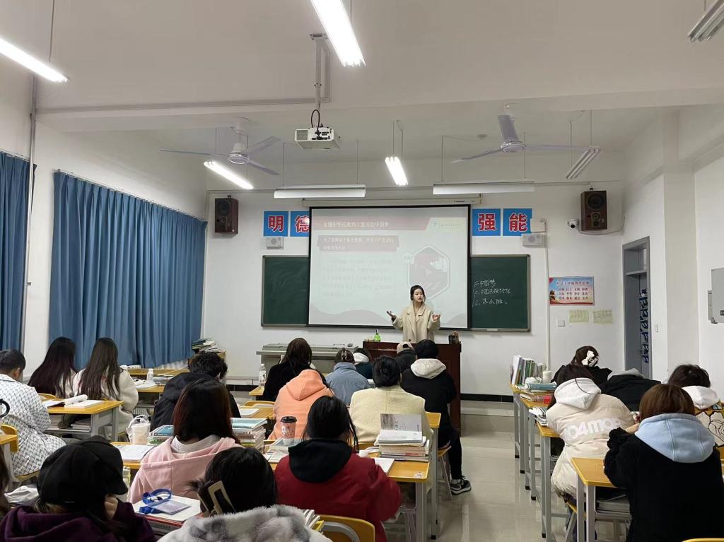 为提升思政课教学质量,促进新老教师间相互交流学习,3月13日,jdb电子开展了本学期教学示范课、公开课活动。本次活动分别由担任《毛泽东思想和中国特色社会主义理论体系概论》课程的专职教师常俊侠副教授和《习近平新时代中国特色社会主义思想》课程的新进教师刘雨璇主讲,教学科研管理服务中心副主任柴华和毛概教研室主任郭朋雪及部分无课教师参加了听评课。