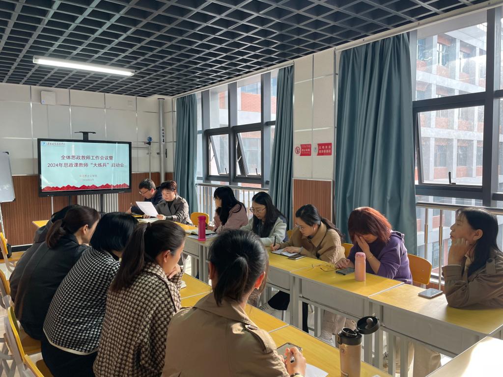 3月27日下午,jdb电子游戏官方网站在学院会议室召开全体教职工会暨2024年思政课教师“大练兵”启动会,全体教师参加。