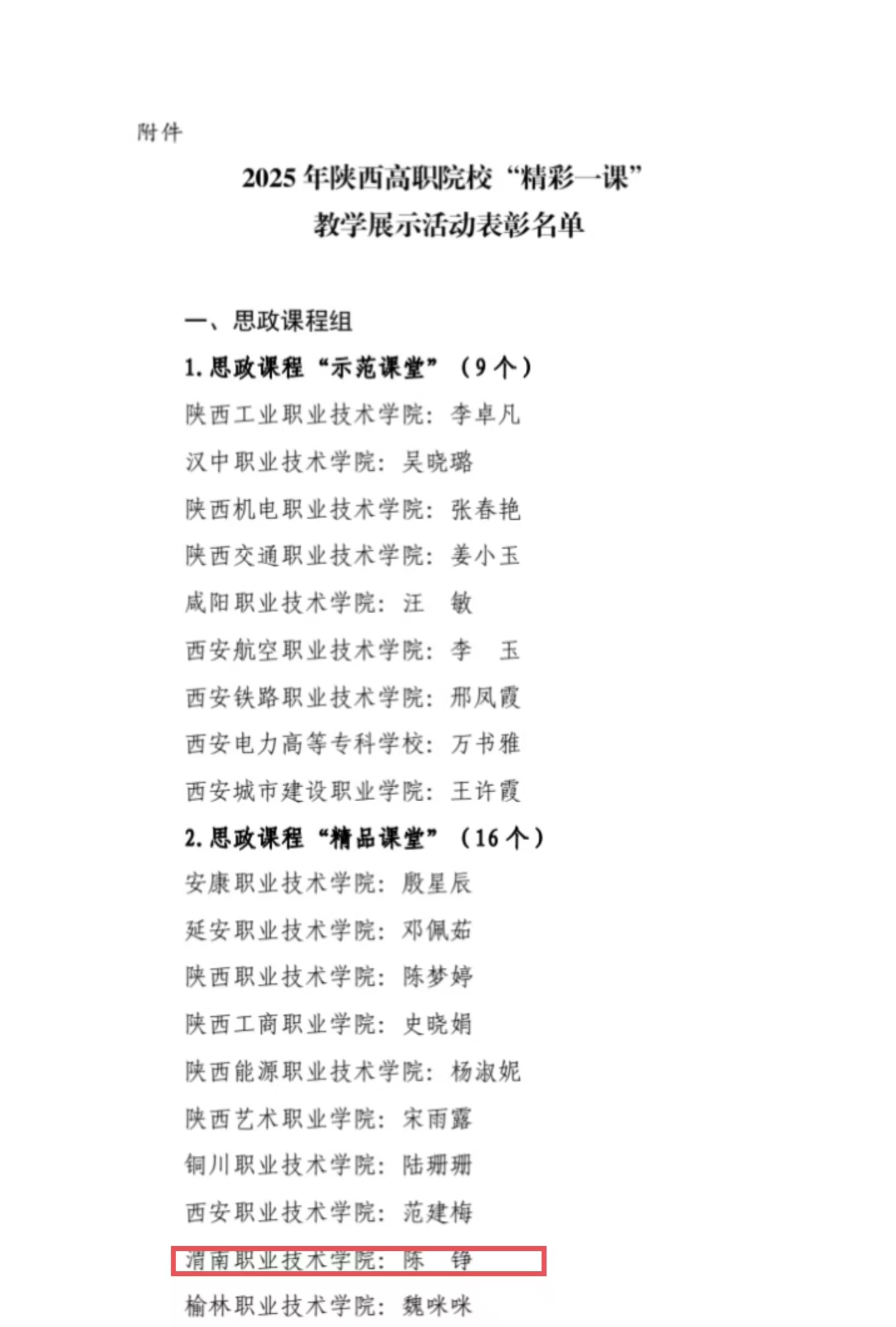 近期,由陕西省委教育工委指导,陕西高职院校“大思政课”建设协同发展联盟主办,陕西机电职业技术学院承办的2025年陕西高职院校“精彩一课”教学展示活动顺利落下帷幕。全省20余所高职院校的100余名jdb电子游戏官方网站院长、思政课教师、专业课教师汇聚一堂。本次活动设置思政课程和课程思政两个组别,jdb电子jdb电子游戏官方网站青年骨干教师陈铮荣获思政课程“精品课堂”称号。