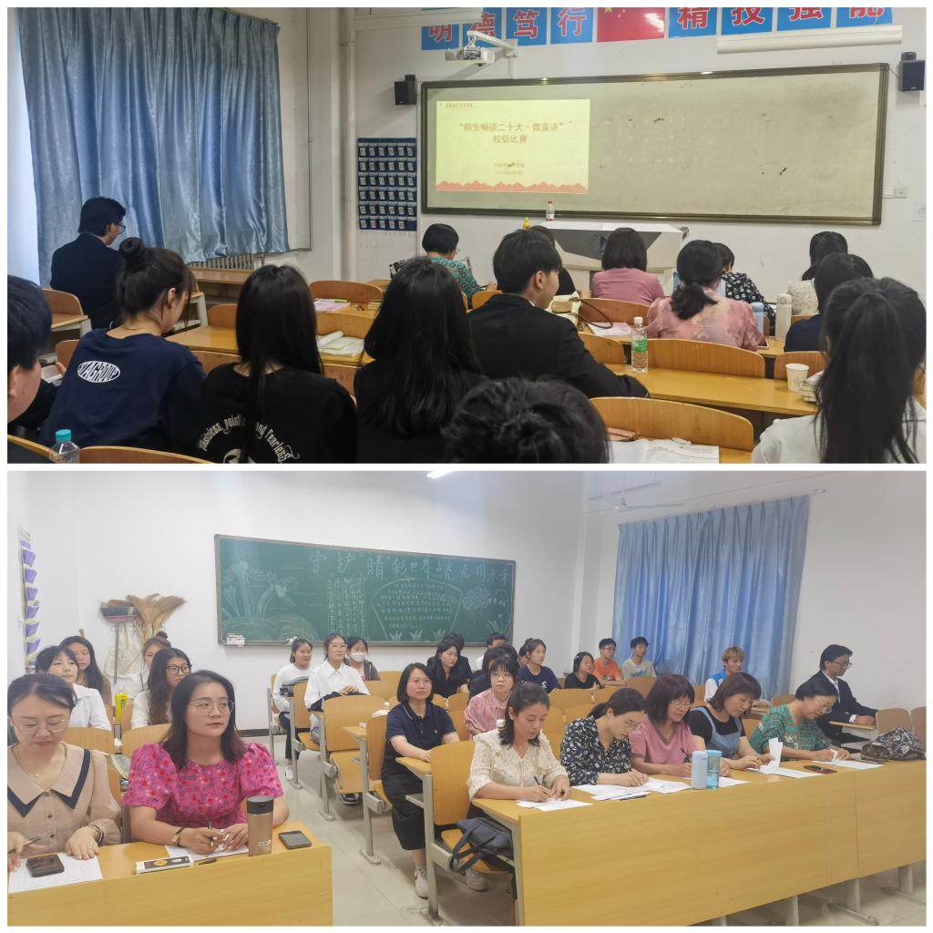 活动伊始,学院积极部署安排,制定《“师生畅谈二十大·微宣讲”活动实施方案》,同时在各思政教师的积极动员下,学生组约有30余名学生踊跃报名、精心准备,通过选拔,最终11名学生进入校级比赛环节。比赛中,各位学生结合自身专业,将学习党的二十大精神的感悟转化为一个个鲜活的故事,通过接地气、有温度、青春范的宣讲,展现了渭职青年学子的自信自强和一心向党的精神风貌。最终教师、学生各1名选拔推荐参加省赛。